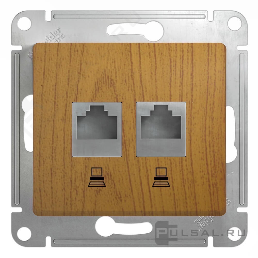 Розетка компьютерная RJ45 Cat.5e (UTP) Glossa, одинарная, цвет - дуб