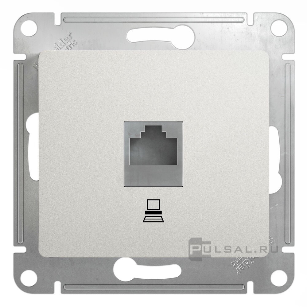 Розетка компьютерная RJ45 Cat.5e (UTP) Glossa, одинарная, цвет - перламутр
