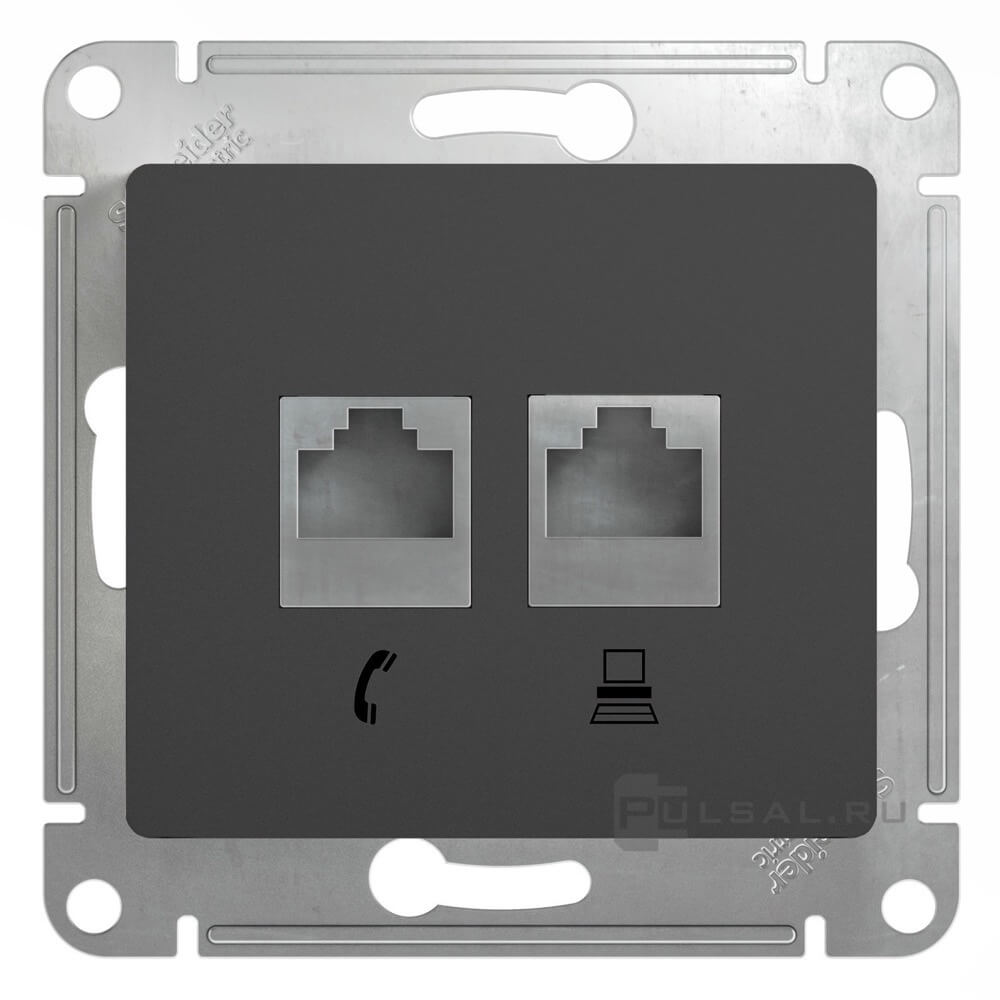 Glossa, без шторок, с заземлением, одинарная, винтовые клеммы, цвет - антрацит