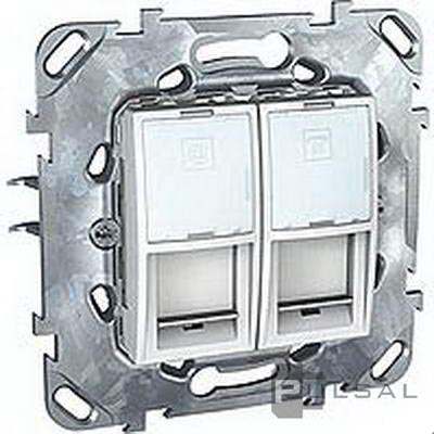 Розетка телефонная RJ11 Unica Базовая, Unica Хамелеон, Unica Quadro, двойная, цвет - белый