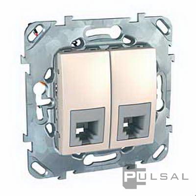 Розетка телефонная RJ12 Unica Базовая, Unica Хамелеон, Unica Quadro, двойная, цвет - бежевый