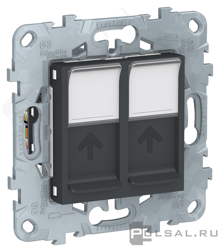 Unica New Pure, Unica New Studio, без шторок, с заземлением, одинарная, безвинтовые клеммы, цвет - антрацит