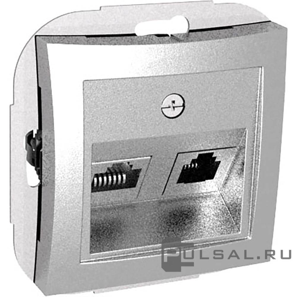 Дуэт, со шторками, с заземлением, двойная, винтовые клеммы, цвет - серебристый