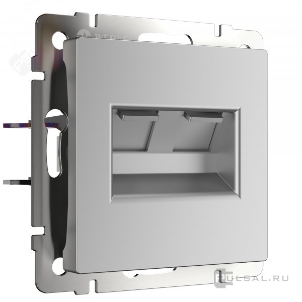 Розетка компьютерная RJ45 Кат.5е UTP Alumax, Split, Slab, Senso, Baguette, Acrylic, Platinum, Elite, Snabb, Stream, Flock, Stark, Fiore, Favorit, Diamant, Aluminium, Antik, Metallic, двойная, цвет - серебряный