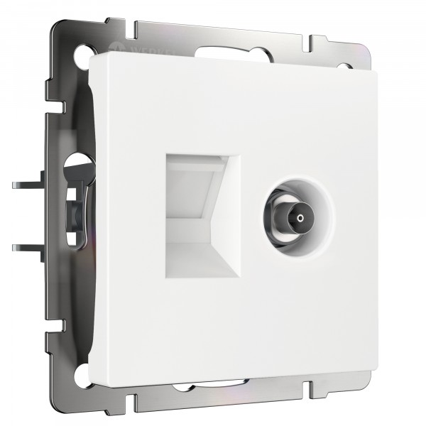 Розетка TV+RJ45 Alumax, Split, Slab, Senso, Baguette, Acrylic, Platinum, Elite, Snabb, Stream, Flock, Stark, Fiore, Favorit, Diamant, Aluminium, Antik, Metallic, телевизионная (TV), одинарная, цвет - белый