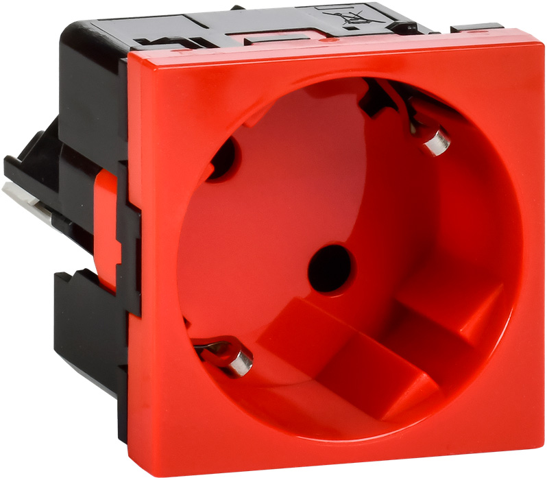 Розетка 45° Mosaic, DLP, DLP floor, DLP IP 44, DLP IP 40, без шторок, с заземлением, одинарная, безвинтовые клеммы, цвет - красный