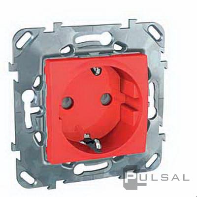 Розетка Unica Базовая, Unica Хамелеон, Unica Quadro, Unica Top, Unica Class, со шторками, с заземлением, одинарная, винтовые клеммы, цвет - красный