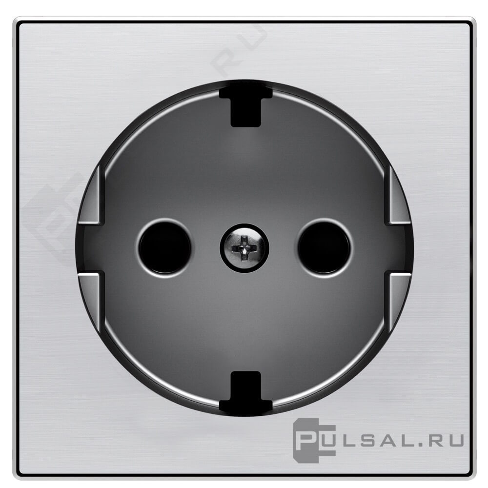 Накладка розетки с плоской поверхностью SKY, со шторками, с заземлением, одинарная, винтовые клеммы, цвет - нержавеющая сталь