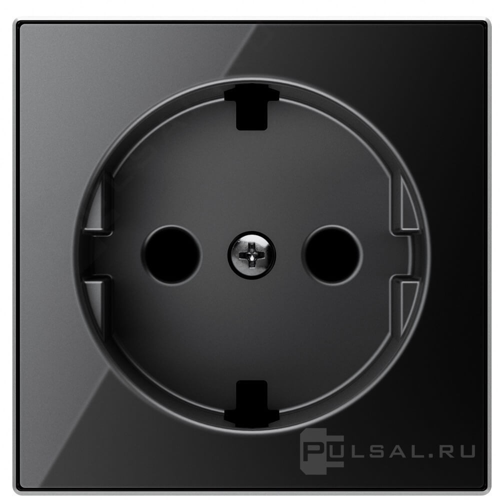 Накладка розетки с плоской поверхностью SKY, со шторками, с заземлением, одинарная, винтовые клеммы, цвет - черное стекло
