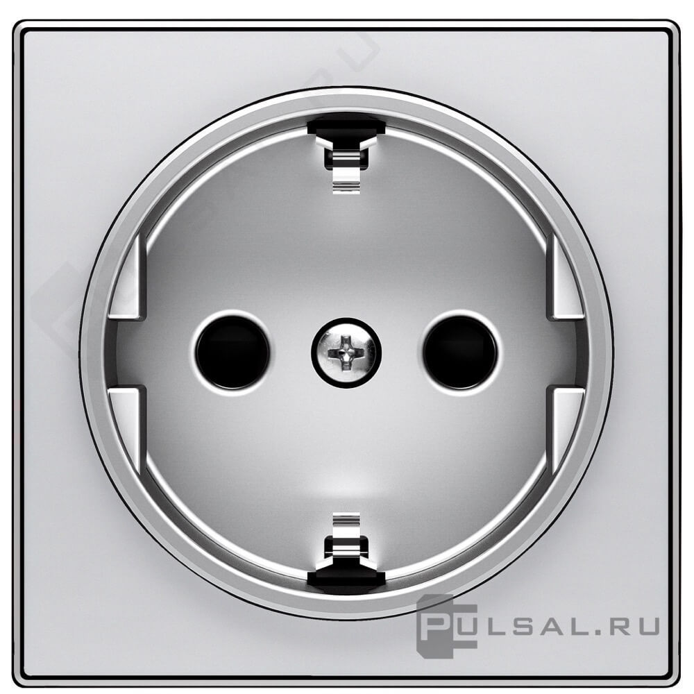 Накладка SKY, со шторками, с заземлением, одинарная, винтовые клеммы, безвинтовые клеммы, цвет - серебряный
