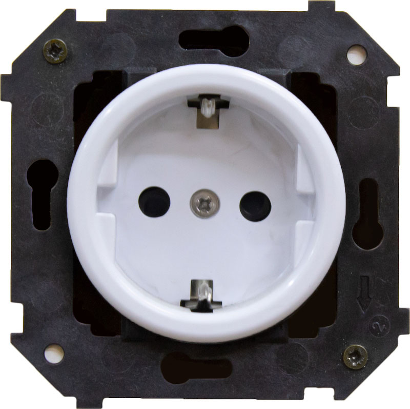 Шедель, без шторок, с заземлением, одинарная, винтовые клеммы, цвет - белый