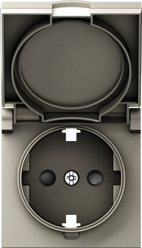 Накладка электрической розетки A07 NATURAL, A07, A07 WAVE, A07 NATURAL ROUND, со шторками, с крышкой, с заземлением, одинарная, цвет - кашемир матовый