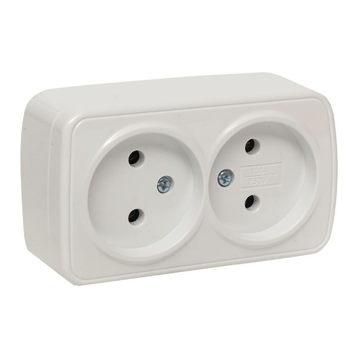 Розетка Минск, без шторок, без заземления, двойная, безвинтовые клеммы, цвет - белый