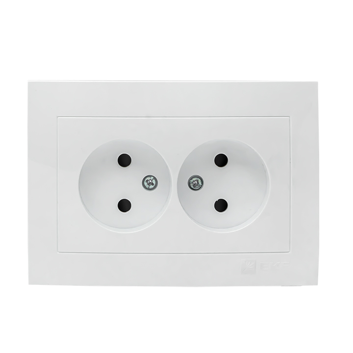 Розетка Валенсия, со шторками, без заземления, двойная, винтовые клеммы, цвет - белый