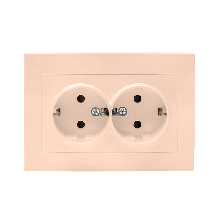 Розетка Валенсия, со шторками, без заземления, двойная, винтовые клеммы, цвет - кремовый