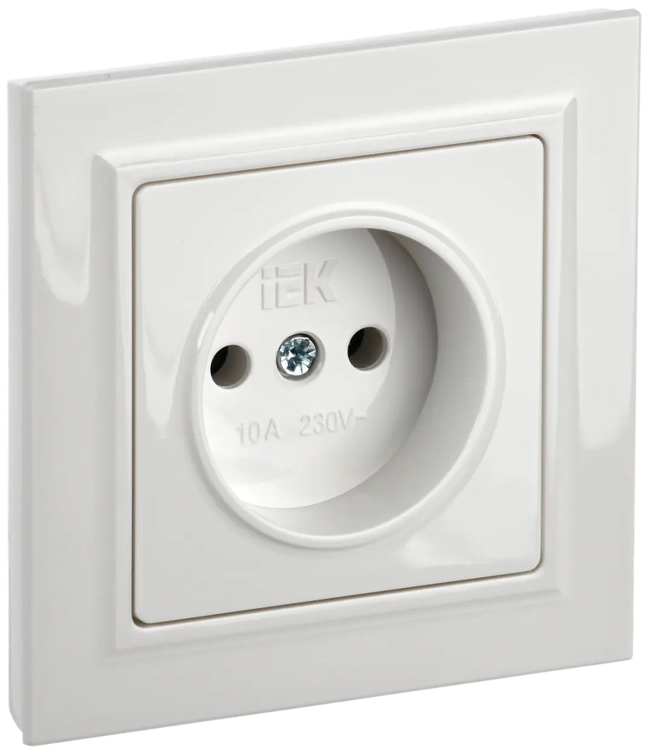 Розетка с рамкой BRITE, без шторок, без заземления, одинарная, винтовые клеммы, цвет - белый