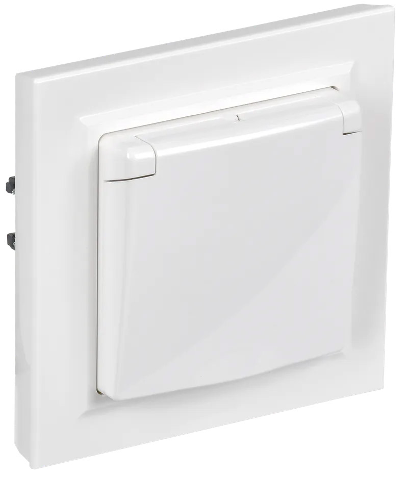 Розетка BRITE, со шторками, с крышкой, с заземлением, одинарная, винтовые клеммы, цвет - белый