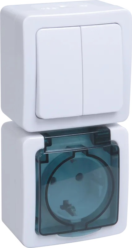 Блок розетки и выключателя ГЕРМЕС PLUS, со шторками, с крышкой, с заземлением, одинарная, винтовые клеммы, цвет - белый