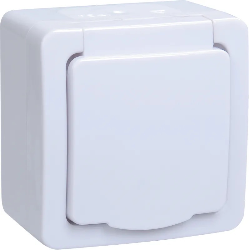 Розетка ГЕРМЕС PLUS, со шторками, с крышкой, с заземлением, одинарная, винтовые клеммы, цвет - белый