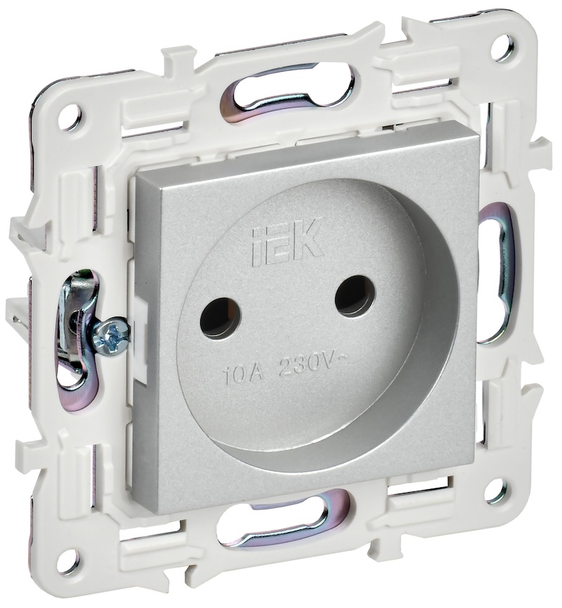 Розетка Skandy, без шторок, без заземления, одинарная, винтовые клеммы, цвет - серебряный