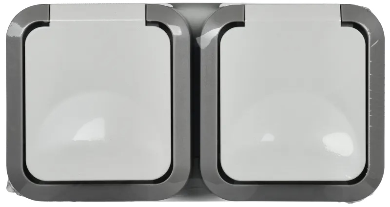 Розетка (горизонтальный блок) TORS, со шторками, с крышкой, с заземлением, двойная, безвинтовые клеммы, цвет - белый