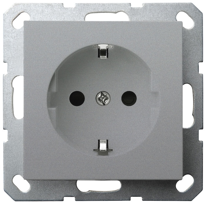 Розетка G series, со шторками, с заземлением, одинарная, цвет - алюминий