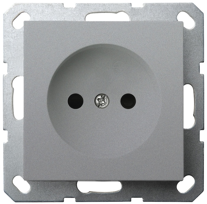 Розетка G series, со шторками, без заземления, одинарная, цвет - алюминий