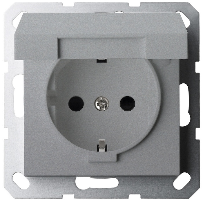 Розетка G series, со шторками, без заземления, одинарная, цвет - алюминий