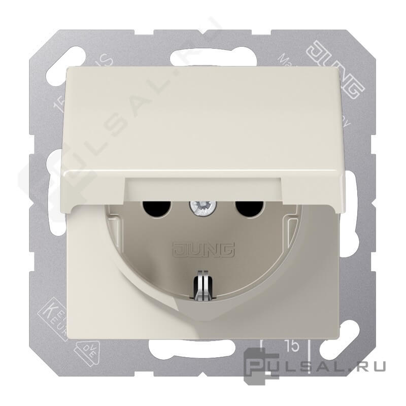 Розетка AS 500, со шторками, с крышкой, с заземлением, одинарная, безвинтовые клеммы, цвет - слоновая кость