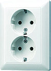 Розетка A VIVA, A creation, A 550, A flow, AS 500, CD 500, ECO profi и ECO profi Standart, ECO profi design (ECO Profi Deco), со шторками, с заземлением, двойная, безвинтовые клеммы, цвет - белый