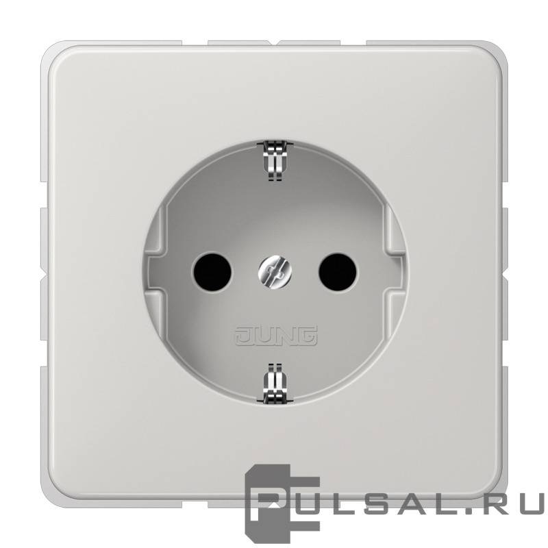 Розетка CD ударопрочная, со шторками, с заземлением, одинарная, безвинтовые клеммы, цвет - светло-серый
