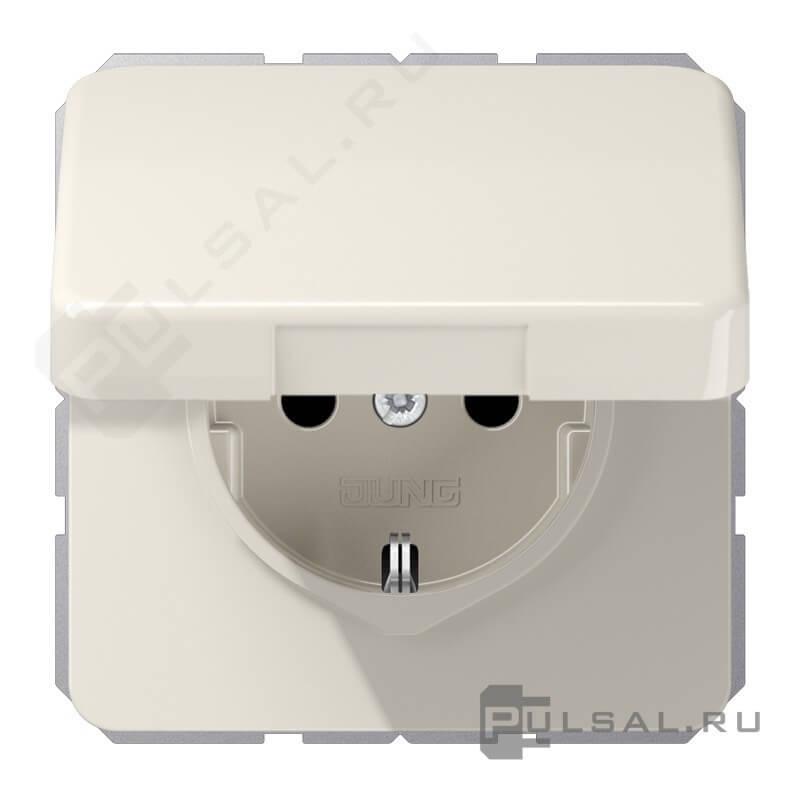 Розетка CD 500, CD ударопрочная, без шторок, с крышкой, с заземлением, одинарная, безвинтовые клеммы, цвет - слоновая кость