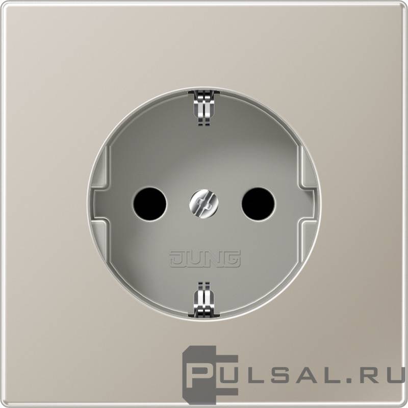 Розетка LS 990, LS 1912, LS plus, LS ZERO, LS-design, FD-design, со шторками, с заземлением, одинарная, безвинтовые клеммы, цвет - нержавеющая сталь