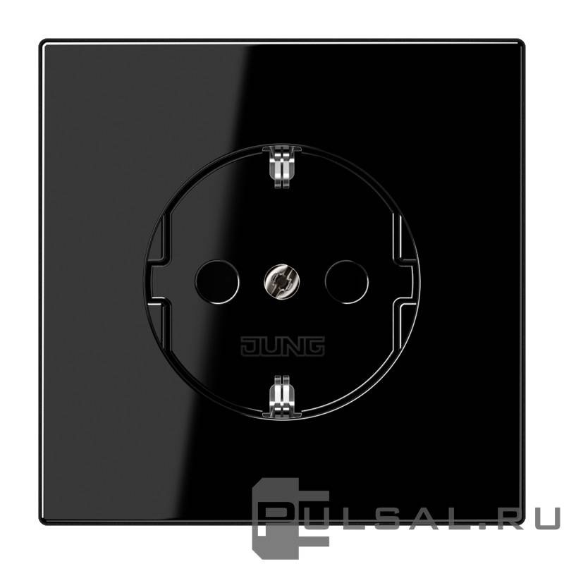 Розетка LS 990, LS plus, LS-design, FD-design, без шторок, с заземлением, одинарная, безвинтовые клеммы, цвет - черный