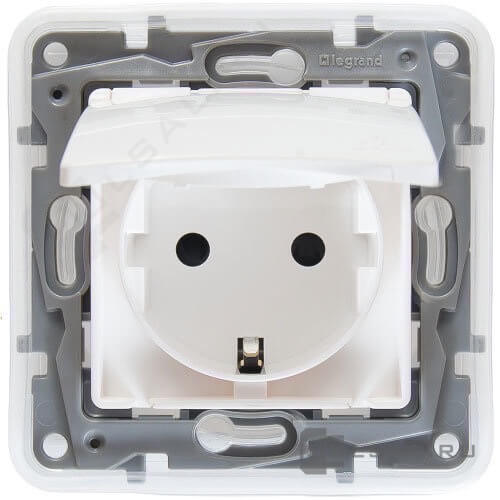 Etika, со шторками, с крышкой, с заземлением, одинарная, винтовые клеммы, цвет - белый