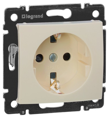Розетка Valena, со шторками, с заземлением, одинарная, винтовые клеммы, цвет - слоновая кость