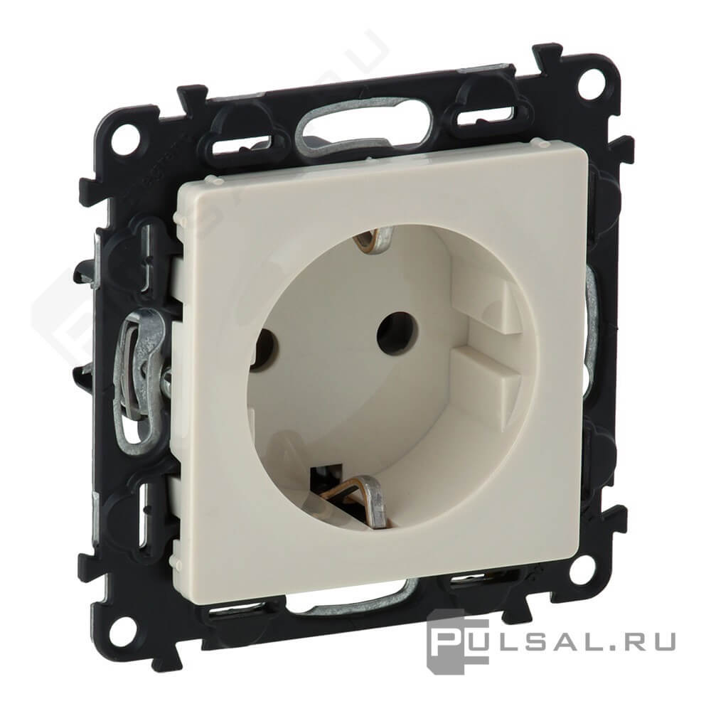 Умная розетка Netatmo, Valena Life, со шторками, с заземлением, одинарная, безвинтовые клеммы, цвет - слоновая кость