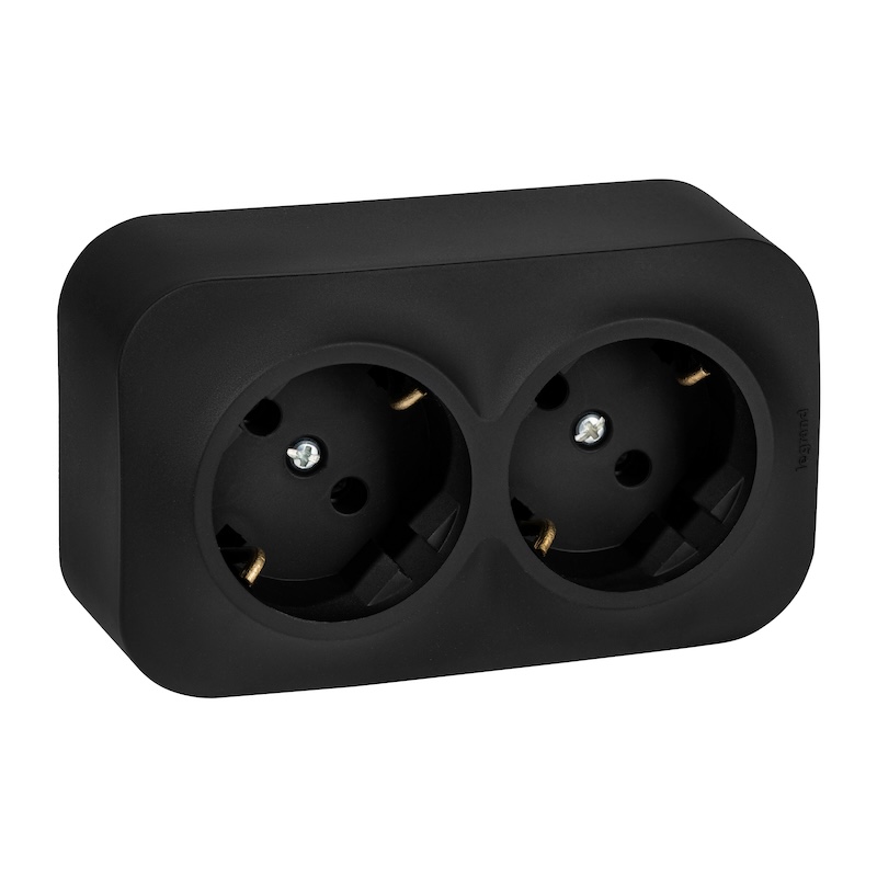 Quteo, со шторками, с заземлением, двойная, винтовые клеммы, цвет - матовый черный