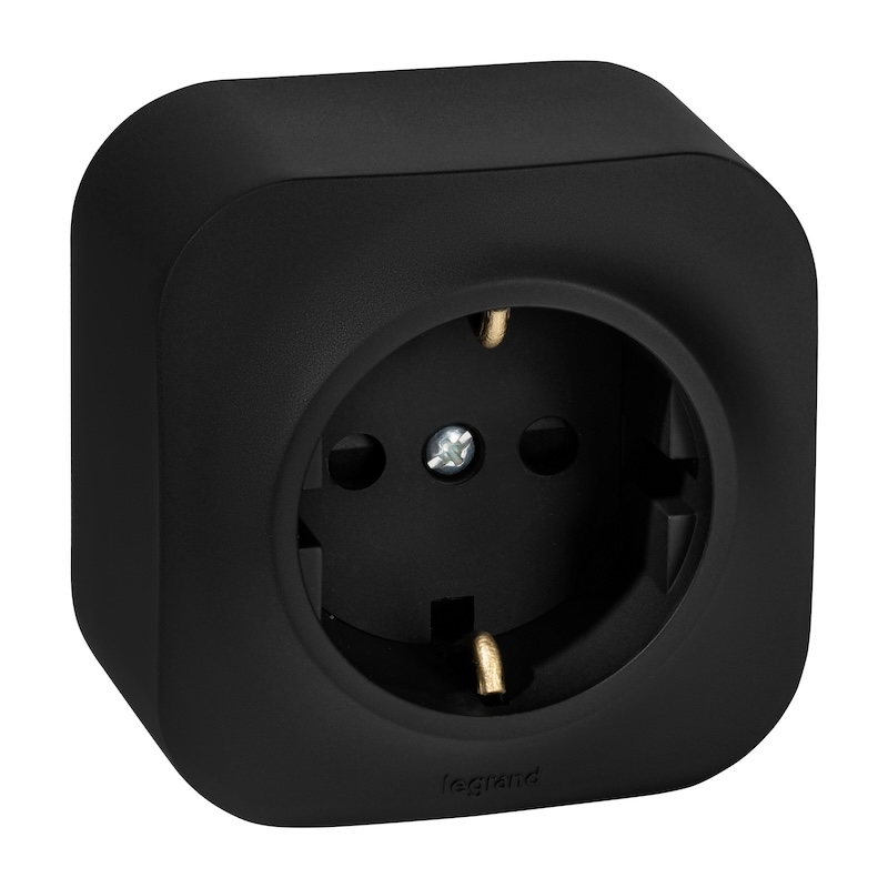 Quteo, без шторок, с заземлением, одинарная, винтовые клеммы, цвет - матовый черный