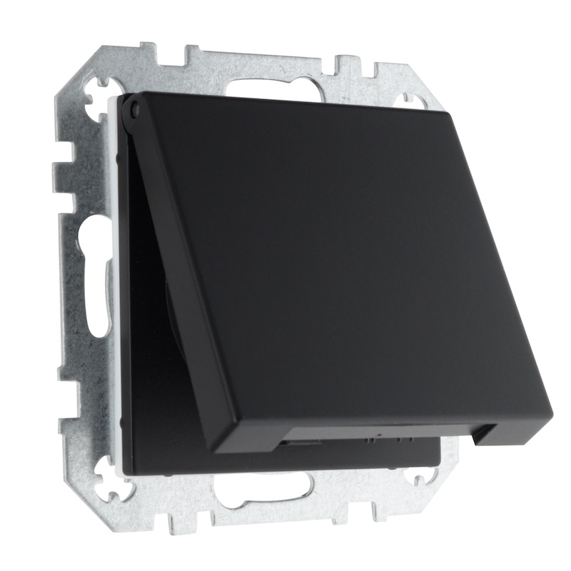 Выключатель Epsilon, Retro Liregus, одноклавишный, без подсветки, с возможностью подсветки, цвет - черный матовый