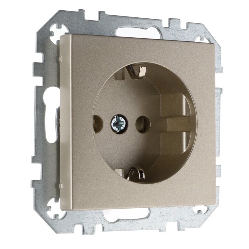 Розетка Epsilon, Retro Liregus, со шторками, с крышкой, с заземлением, одинарная, винтовые клеммы, цвет - шампань