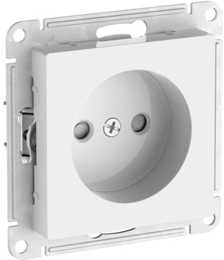Розетка с выталкиванием вилки Atlas Design Antique, AtlasDesign Air, Atlas Design, со шторками, с заземлением, одинарная, винтовые клеммы, цвет - белый