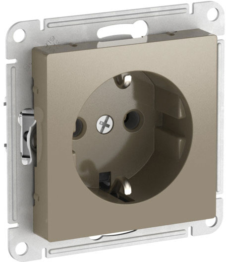 Розетка (безвинтовые клеммы) Atlas Design Antique, AtlasDesign Air, Atlas Design, без шторок, с заземлением, одинарная, безвинтовые клеммы, цвет - шампань