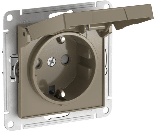 Розетка (безвинтовые клеммы) Atlas Design Antique, AtlasDesign Air, Atlas Design, со шторками, с крышкой, с заземлением, одинарная, безвинтовые клеммы, цвет - шампань