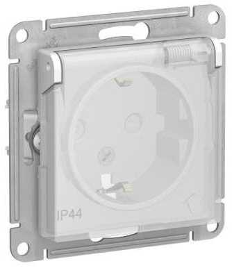 Розетка с выталкиванием вилки Atlas Design Antique, AtlasDesign Air, Atlas Design, со шторками, с заземлением, одинарная, винтовые клеммы, цвет - белый