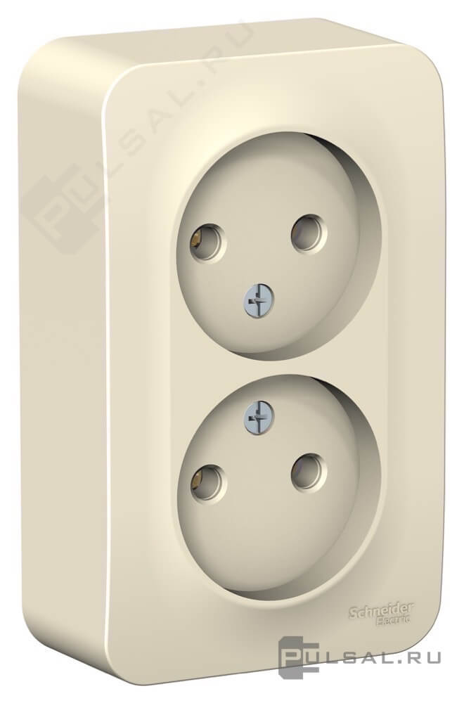 Розетка с рамкой Blanca, без шторок, с заземлением, двойная, цвет - молочный