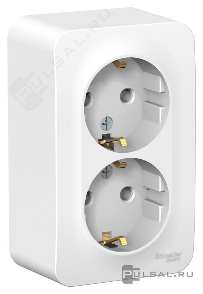 Розетка с изолирующей пластиной Blanca, без шторок, с заземлением, двойная, цвет - белый