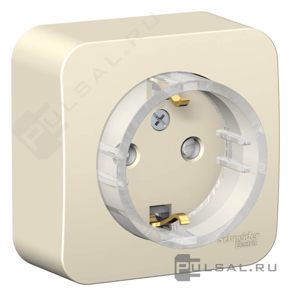 Розетка с рамкой Blanca, со шторками, с заземлением, одинарная, цвет - молочный