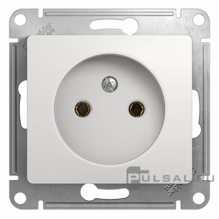 Розетка Glossa, без шторок, без заземления, одинарная, винтовые клеммы, цвет - белый