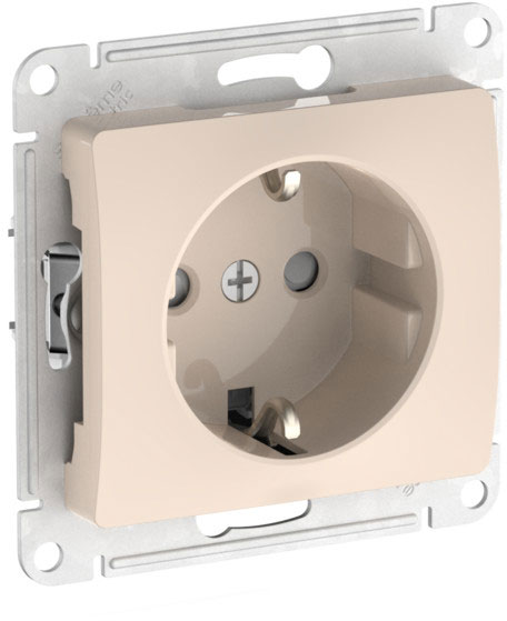 Розетка (безвинтовые клеммы) Glossa, со шторками, с заземлением, одинарная, безвинтовые клеммы, цвет - бежевый